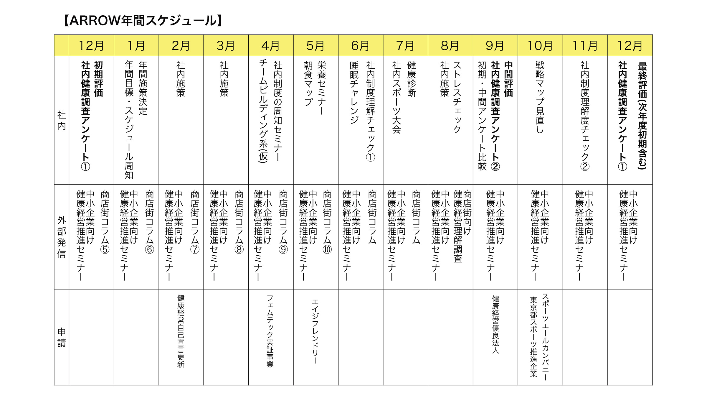 商店街で働く方々の健康維持と店舗の継続的な活力を支援する目的で、商店街掲示板等にて 「健康経営」をテーマにした月1回のコラム連載(全12回)を企画。年齢を重ねても元気にお店を続けていただくための“健康づくり”を応援したい、経営者自身の健康が、お店の活気やお客様満足につながるという視点を広めたい 、地域の商店街全体として「健康を大切にする雰囲気」を醸成したい 、このような想いのもと、商店主の皆さまに親しんでいただける内容を心がけて発信しています。